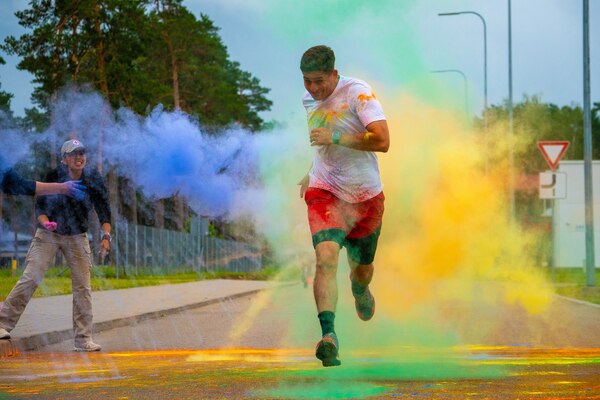 U.S. soldiers participate in a color run at Camp Adazi, Latvia, June 14, 2024, to celebrate the Army... Photo Details >