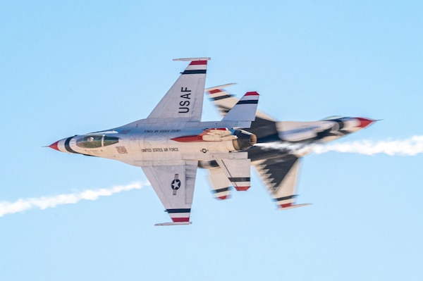 Members of the Thunderbirds, the Air Force's flight demonstration squadron, perform during the Thund... Photo Details >