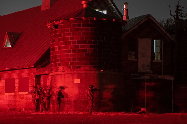 Marines conduct a simulated raid during realistic urban training in Lynchburg, Va., March 19, 2025. ... Photo Details >