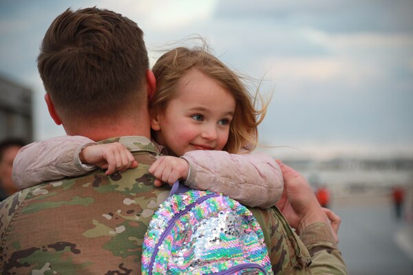 A soldier reunites with a loved one in Harrisburg, Pa., March 26, 2025, upon returning from a mobili... Photo Details >