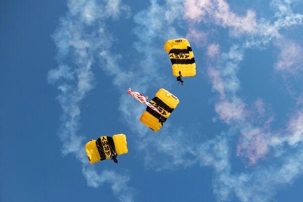 Soldiers assigned to the U.S. Army Golden Knights parachute team perform during the 2025 Beaufort Ai... Photo Details >