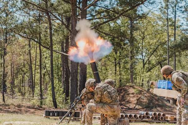 Soldiers fire a 120 mm M120A1 towed mortar system during the 2025 International Best Mortar Competit... Photo Details >