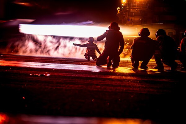 A Navy F/A-18E Super Hornet launches from the flight deck of the USS Nimitz in the Philippine Sea, A... Photo Details >