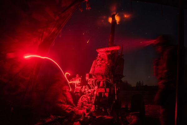 Soldiers fire an M119 howitzer during the nighttime live-fire portion a qualification at Fort Drum, ... Photo Details >