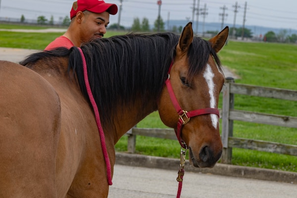 A soldier assigned to the 1st Infantry Division's Commanding General's Mounted Color Guard explores ... Photo Details >