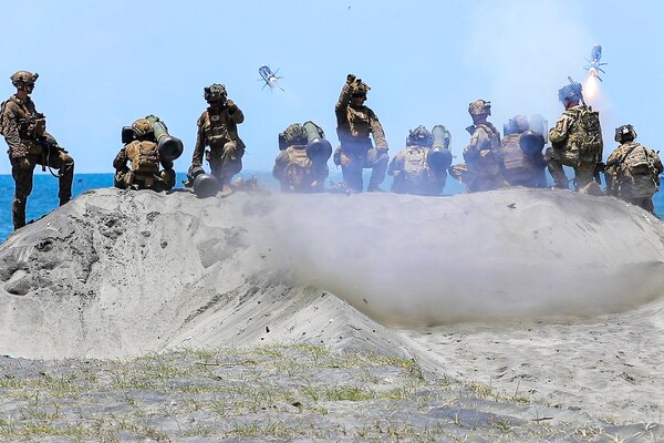 Soldiers and Marines fire FGM-148 Javelin missiles as part of a live-fire drill during Exercise Bali... Photo Details >