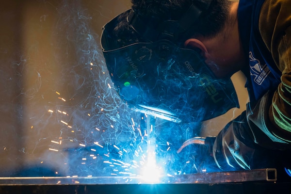 Air Force Senior Airman Jared Villalta, an aircraft metals technology specialist, welds components a... Photo Details >