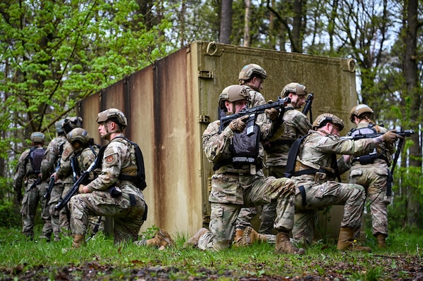 Airmen respond to a simulated opposition force during Exercise Swift Saber 25 at Spangdahlem Air Bas... Photo Details >