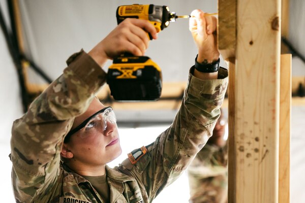 Army Spc. Sierra Bouton, assigned to the Joint Multinational Training Group Ukraine, prepares struct... Photo Details >