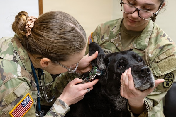 Army Capt. Rachel Bear, chief of Dover Air Force Base Veterinary Services, and Spc. Emaline Cruicksh... Photo Details >