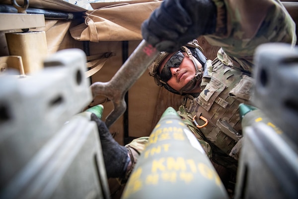 Army Sgt. Robert Ramirez, a cannon crewmember assigned to 2nd Battalion, 77th Field Artillery Regime... Photo Details >