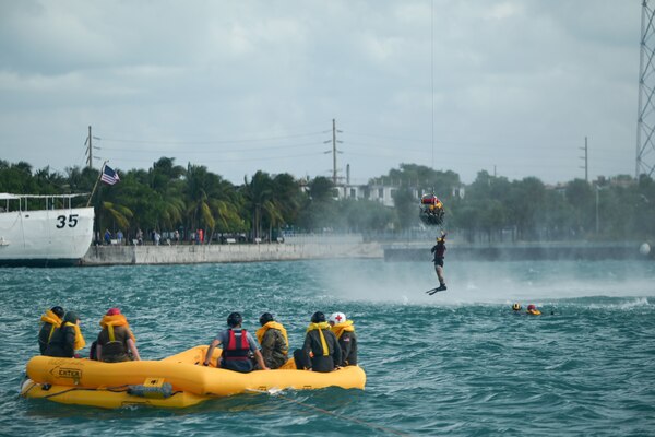 Reservists, Coast Guardsmen and emergency response officials participate in water survival training ... Photo Details >